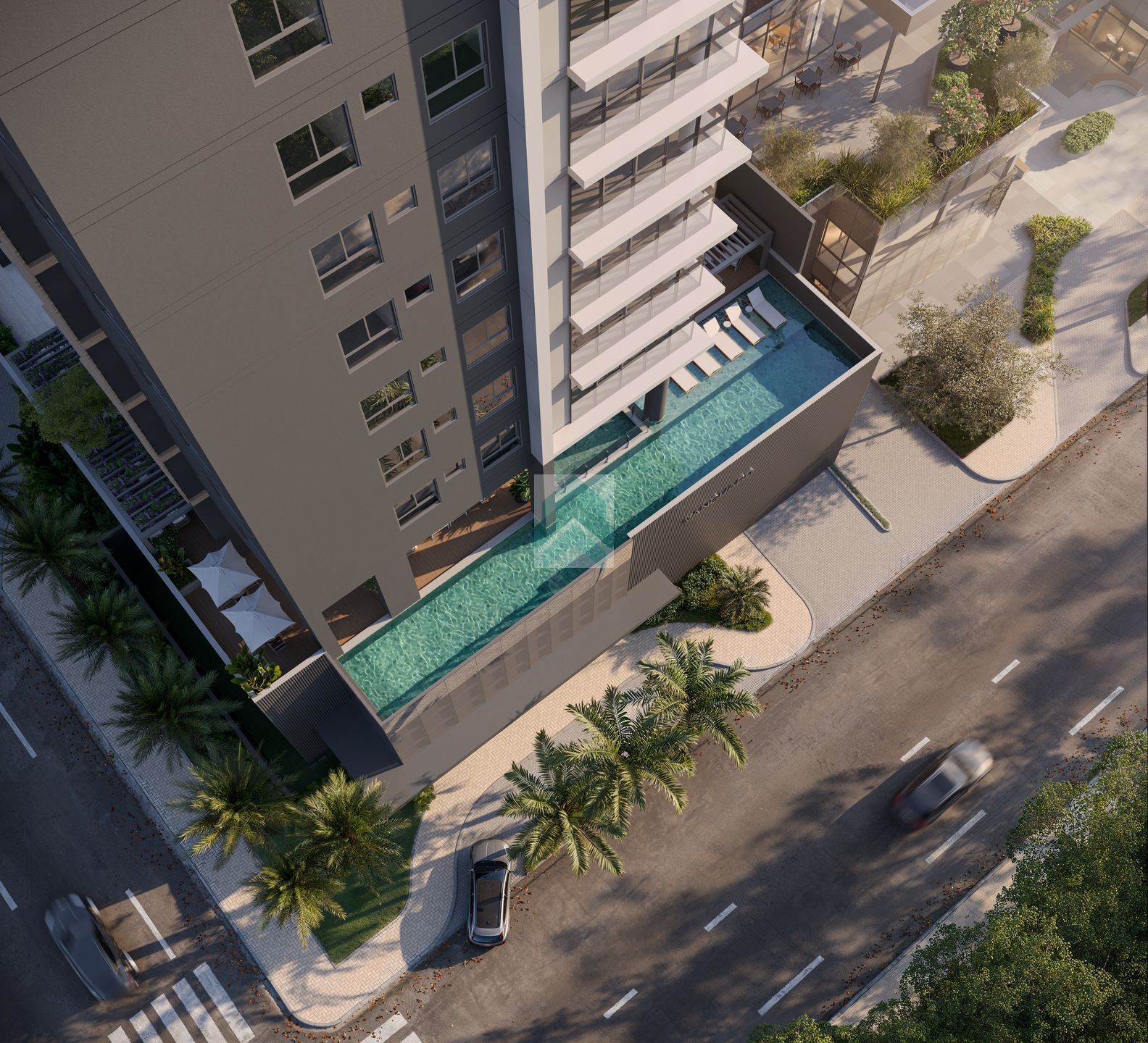 Apartamentos de 2 suítes com área de 80m² e apartamentos de 115m² com 1 suíte e 2 demi-suítes, são a síntese da eficiência e do bem-estar. Com Rooftop de 360° no 32° andar, com uma vista esplendida da cidade nos momentos de lazer.